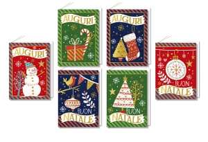 Biglietti Natale 11,7x17cm DECORAZIONI E ALBERI DI NATALE conf.12pz