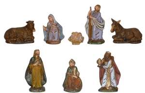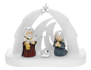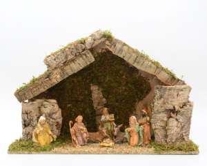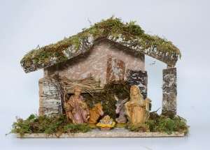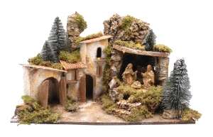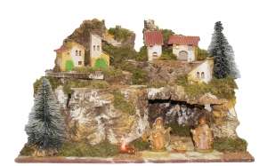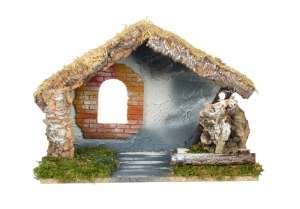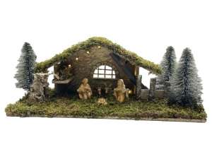 PRESEPE CAPANNA E PAESAGGIO 58x34x37cm C/FIGURE 10cm E LUCI