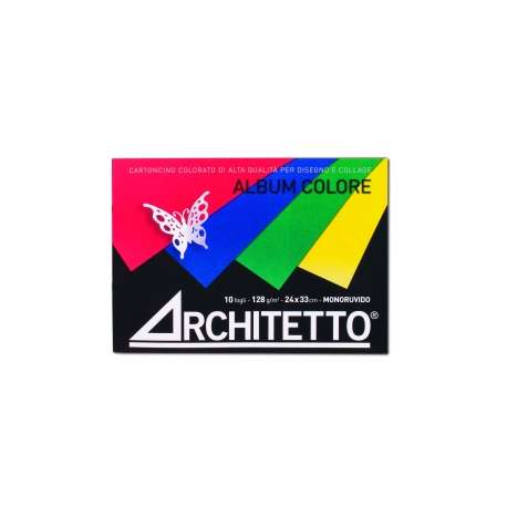 Cartoncino colorato monoruvido di alta qualità per disegno e collage. 10 fogli formato 24x33 cm da 128 g/mq.