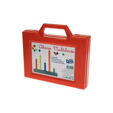 Valigetta abaco - base 1-4-6-10 contiene: 5 asticciole “base 1”, 5 asticciole “base 4”, 5 asticciole “base 6”, 5 asticciole “base 10”, 1 base con fori, 45 cilindretti. KEYWORDS :