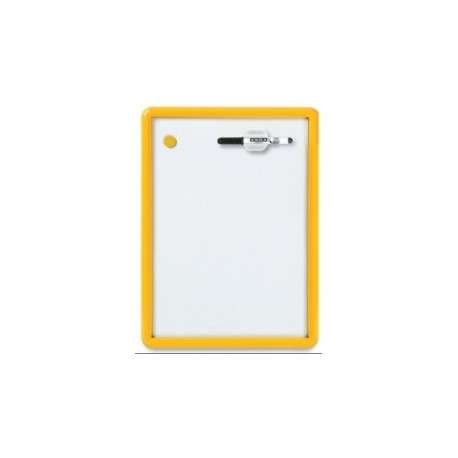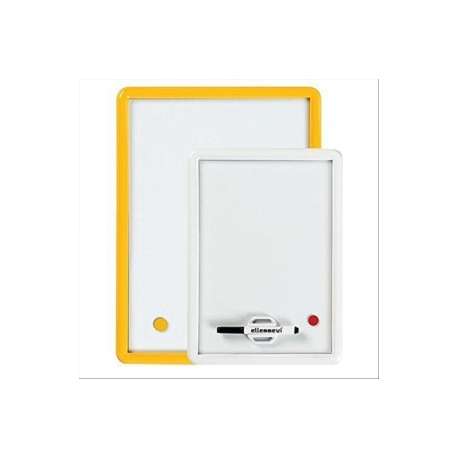 Lavagne magnetiche in plastica con cornice termoformata. Superficie bianca scrivibile con pennarello cancellabile a secco. Accessori compresi: pennarello, cancellino magnetico, portapennarello e un magnete. Fornite in colori assortiti.