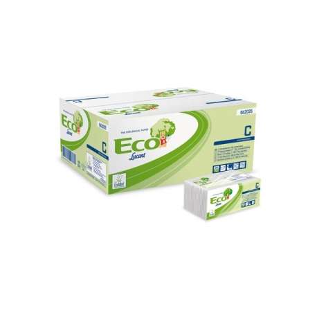 Asciugamano piegato a "C" a 1 Velo in fibra rigenerata. Scatola composta da 20 confezioni da 192 asciugamani.