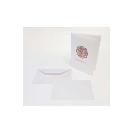 Biglietti in carta pregiata uso mano con la tipica sfrangiatura del taglio a mano. Busta 110 gr. e cartoncino 240 gr.