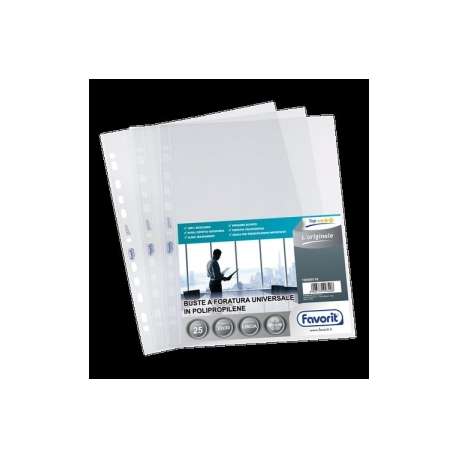 Realizzate in polipropilene, finitura liscia e perfetta trasparenza "Super Clear" con elevato spessore per presentazioni di book e cataloghi di alto prestigio. Consentono una perfetta archiviazione nei raccoglitori ad anelli. Confezione da 25 buste.