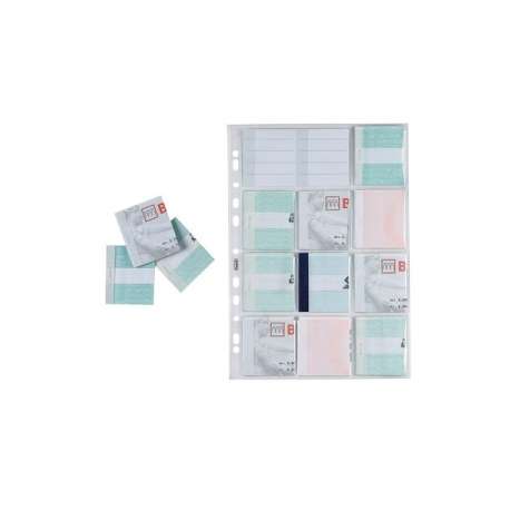 Realizzata in polipropilene con finitura liscia. Dispone di 11 tasche per matrici assegni. Comprende cartoncini scrivibili. Confezione da 10 pezzi.