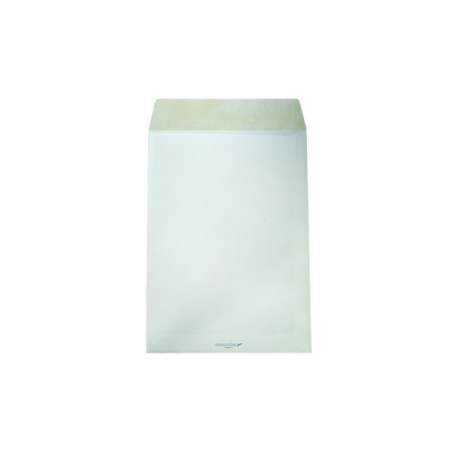 Buste a sacco bianche senza soffietto, in scatola da 500 pezzi. Chiusura autoadesiva.
