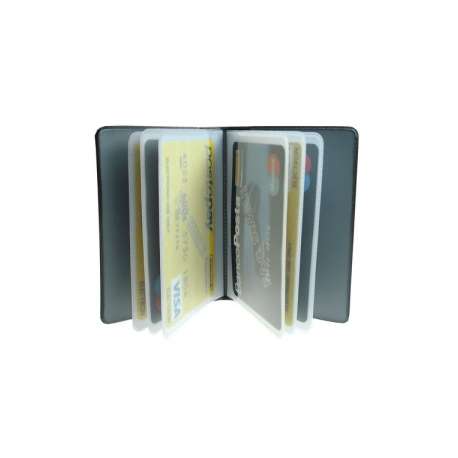 Portacard in pvc espanso a libro a 14 scomparti in pvc antistatico . Stampa a caldo. Colori assortiti.