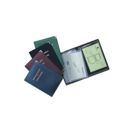 Copertina in pvc espanso con angoli nichel e stampa a caldo. Custodie interne per libretto polizze e carta verde. Colori assortiti.