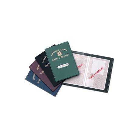 Copertina in pvc espanso stampata a caldo per la carta d'identità formato cartaceo, finestra per la lettura del numero. Colori assortiti.