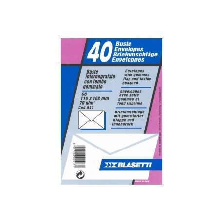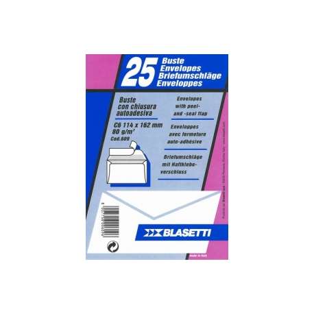 Buste commerciali bianche senza finestra confezionate in blister. Formato 11,4x16,2 cm.