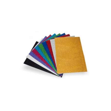 Fogli di gomma espansa spessore 2mm. Utilizzabili per fare lavoretti di decoupage. Colori glitterati.