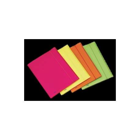 Cartelle 3-lembi realizzate in polipropilene opaco dai colori fluorescenti. Chiusura con elastico tondo tinta su tinta. Confezione da 5 pezzi.