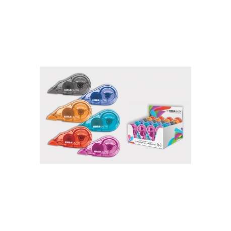 Correttore a nastro con fusto colorato. Disponibile in colori assortiti.