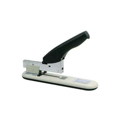 Cucitrice da tavolo interamente in metallo, sistema anti-inceppamento e spingipunti estraibile, possibilità di selezionare la cucitura per diverse quantità di fogli.