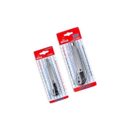 Cutter in acciaio zincato metallizzato con lama 9mm. Fusto colore argento.