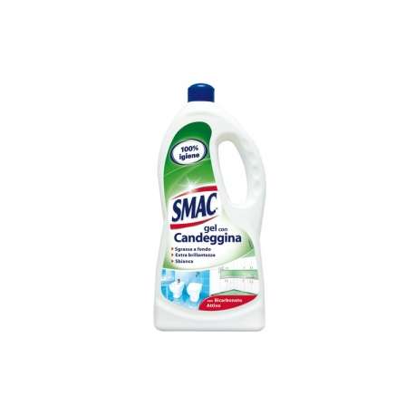 Con Bicarbonato Attivo. Smac gel con Candeggina unisce il potere smacchiante e igienizzante della candeggina al bicarbonato attivo per rimuovere lo sporco, igienizzare e rendere ultrabianche e brillanti tutte le superfici della casa.