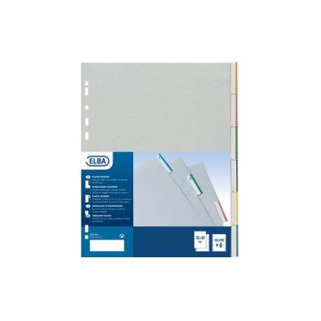 Divisori neutri a tasti personalizzabili realizzati in polipropilene grigio da 120 my per uso intenso. Foratura universale. Tasti neutri e cartoncino stampato e fustellato per la personalizzazione.