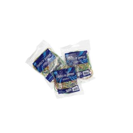 Elastici in gomma assortiti nei diametri. Bustina da 25 grammi. Confezione da 40 bustine.