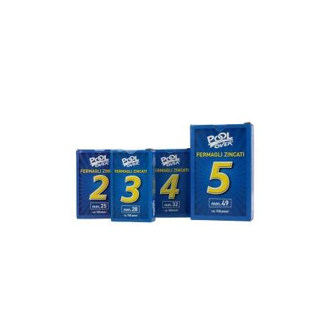 Fermagli in acciaio zincato. Confezionati in scatole da 1000 pezzi.