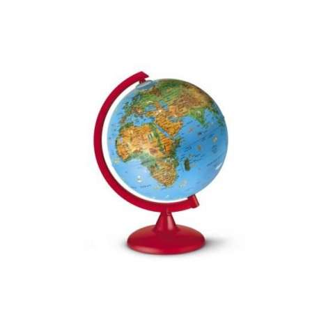 Globo geografico Circus 25 cm, luminoso, cartografia con effetto fisico e politico e con illustrazioni di piccole figure di animali e cose, adatto anche come lampada per la cameretta dei piccoli. Base in plastica rosso. Fornito montato in scatola litografata chiusa.