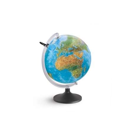 Globo geografico Lumierissimo diam. 30 cm, luminoso, doppia cartografia FISICA (spento) / POLITICA con capitali e confini evidenziati (acceso). Base in resina nera e semimeridiano in resina trasparente, lente d'ingrandimento inclusa. Fornito smontato in scatola litografata.