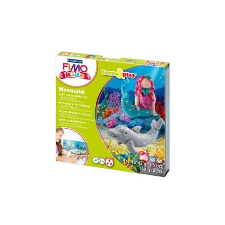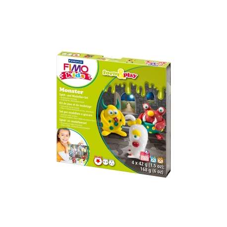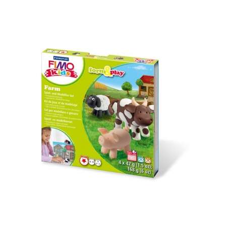 Fimo Kids pasta da modellare per bambini. Form & Play è una combinazione di modellazione e gioco. Si basa su forme chiare e istruzioni strutturate, adatte ai bambini, formulate in funzione dei vari livelli di difficoltà. Contenuto della scatola gioco è di 4 panetti da 42 g., bastoncino per modellare e sfondo da gioco.