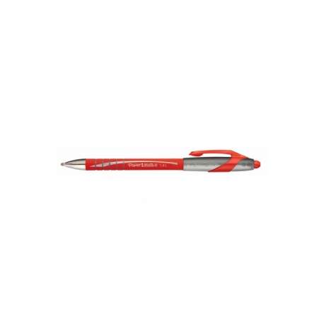 Penna a sfera a scatto monouso con clip. Fusto gommato. Punta L 1,4 mm.