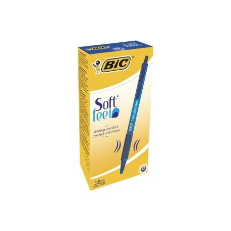 Penna a sfera con meccanismo a scatto. Fusto traslucido gommoso del colore dell'inchiostro. Soffice grip in gomma. Punta media 1,0 mm. Confezione da 12 pezzi.