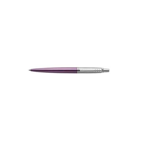 Penna con apertura e chiusura a scatto. Fusto completamente in acciaio e con il fermaglio Parker dal nuovo design. Colore viola.
