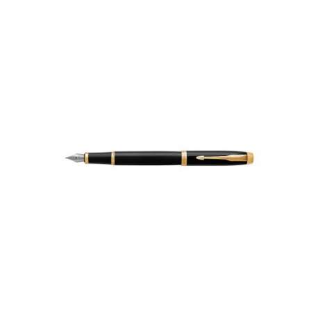 Penna con corpo in finitura lucida nero laccato, arricchita da dettagli in oro.