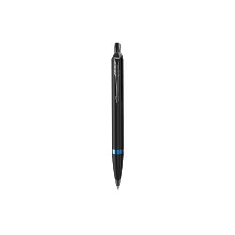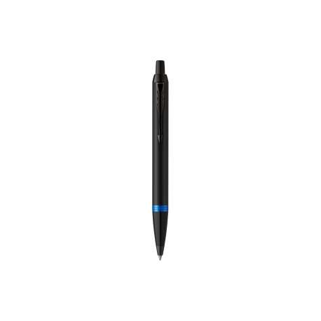 Penna con finitura satinata nera, clip di colore nero. Anello di colore blu.