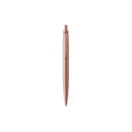 Penna con apertura e chiusura a scatto. Fusto completamente in acciaio e con il fermaglio Parker dal nuovo design. Colore oro rosa.