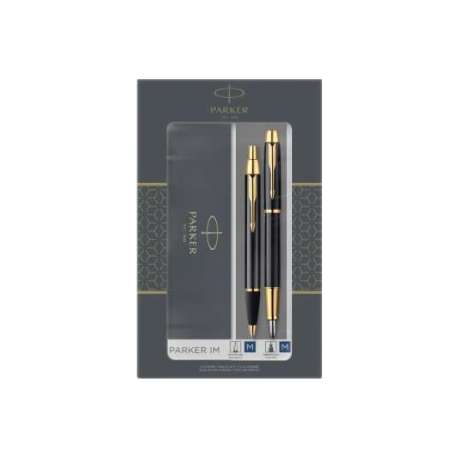 Parure contenente 1 Sfera + 1 Stilografica fusto nero con clip in oro, in confezione regalo.