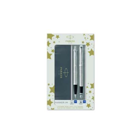 Parure contenente 1 Sfera + 1 Stilografica fusto acciaio con clip in acciaio, in confezione regalo.