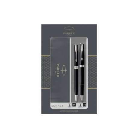 Parure contenente 1 Sfera + 1 Roller fusto nero opaco con clip in acciaio, in confezione regalo.