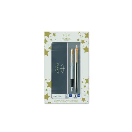 Parure contenente 1 Sfera + 1 Stilografica tutta acciaio con clip in oro, in confezione regalo.