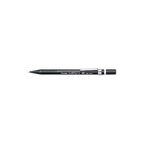 Portamine da 0,5 mm con clip removibile in metallo e gommino di servizio incorporato. Guidamina fisso da 2 mm. Fusto in plastica di colore nero.