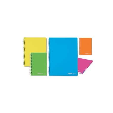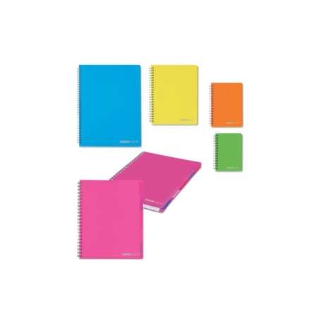 Linea di Quaderni e Blocchi tintaUNITA spiralati con copertina in PPL da 0,5 mm. Lavorazione twill diagonale esterna e liscia all'interno. Fogli in carta da 80 g/mq. Spirale di colore bianco.