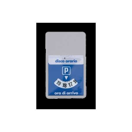 Disco orario singolo in Pvc. Formato 6x10 con fascia trasparente per pubblicità visibile dall'esterno.