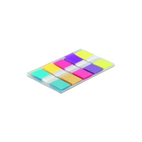 Segnapagina in formato mini, autoadesivo removibile, può essere riposizionato senza danneggiare i documenti, ideale per evidenziare le informazioni importanti. Blister da 100 segnapagina in 5 colori: (azzurro-giallo - fucsia - viola - giallo fluo) di dimensioni 12x43,2 mm.