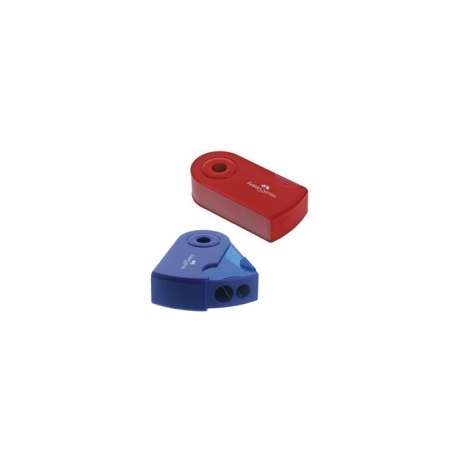 Temperamatite ergonomico a 2 fori con serbatoio. Lama in acciaio e vite di sicurezza. Ideale per matite standard e jumbo. Pratico guscio a scorrimento che proteggere il temperino.