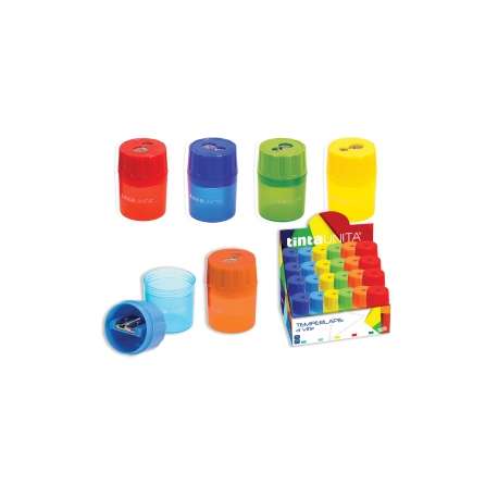 Temperamatite tintaUNITA a 2 fori con serbatoio a cilindro. Confezione da 24 pezzi in colori assortiti.
