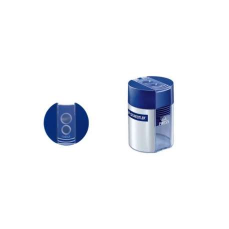 Temperamatite a 2 fori con contenitore per trucioli, per matite colorate con fusto max Ø 10,2 mm.