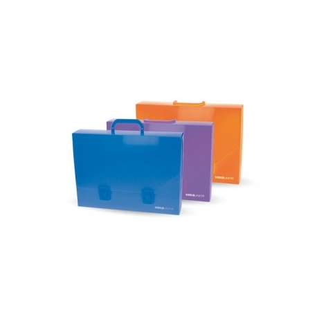 Valigetta in PPL con lavorazione TWILL diagonale esterna e interno liscio. Chiusura e manico neri, colori assortiti.